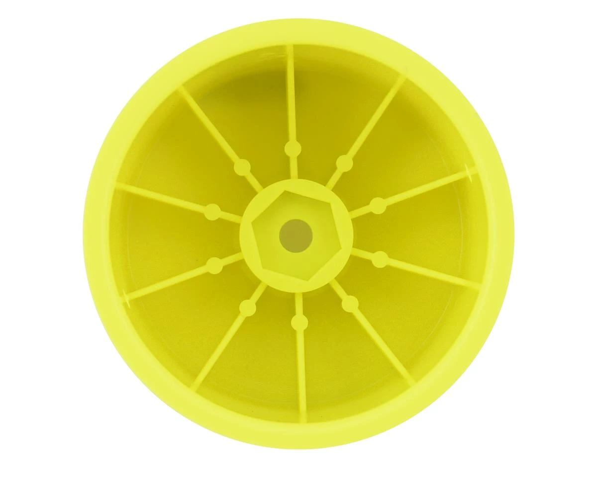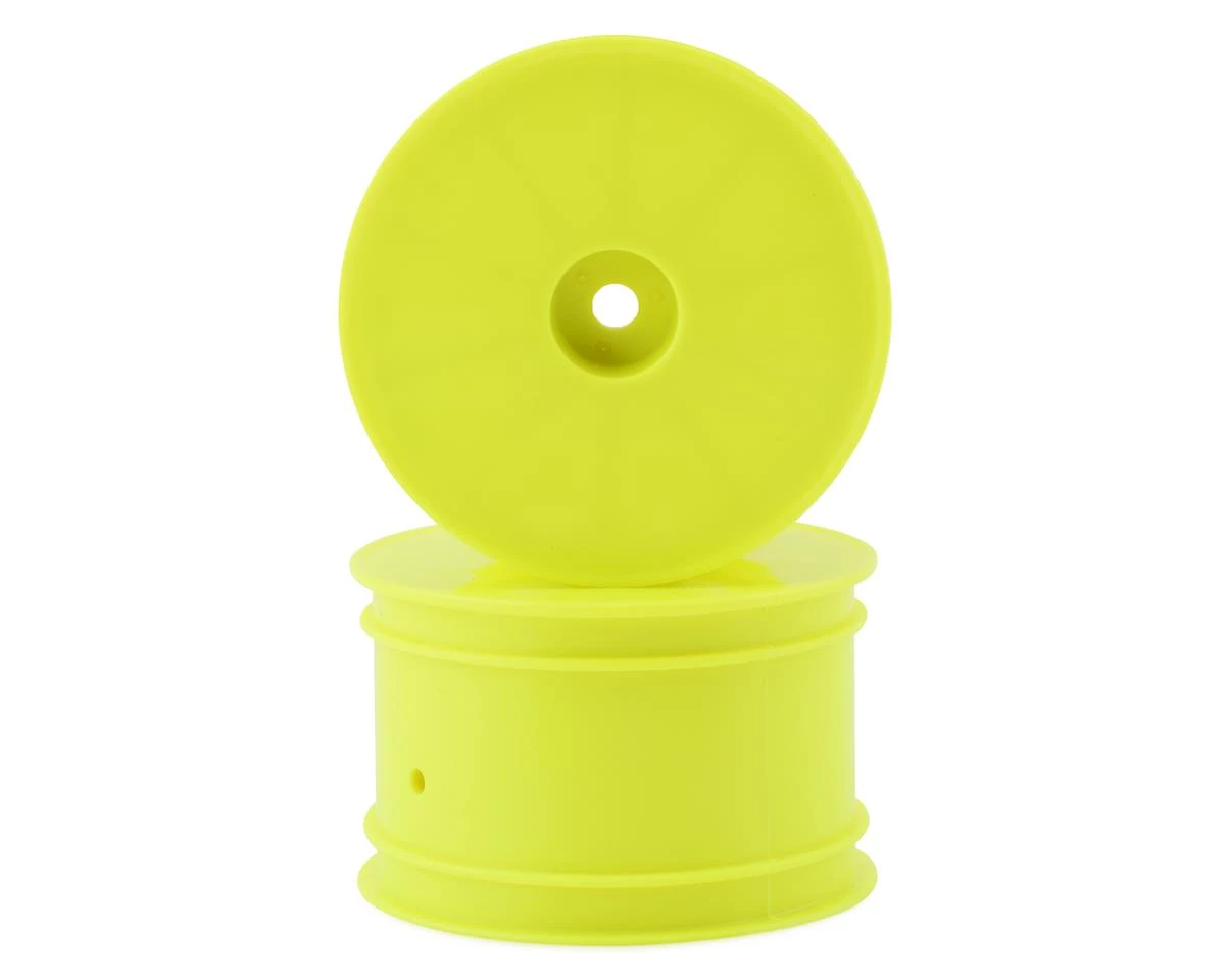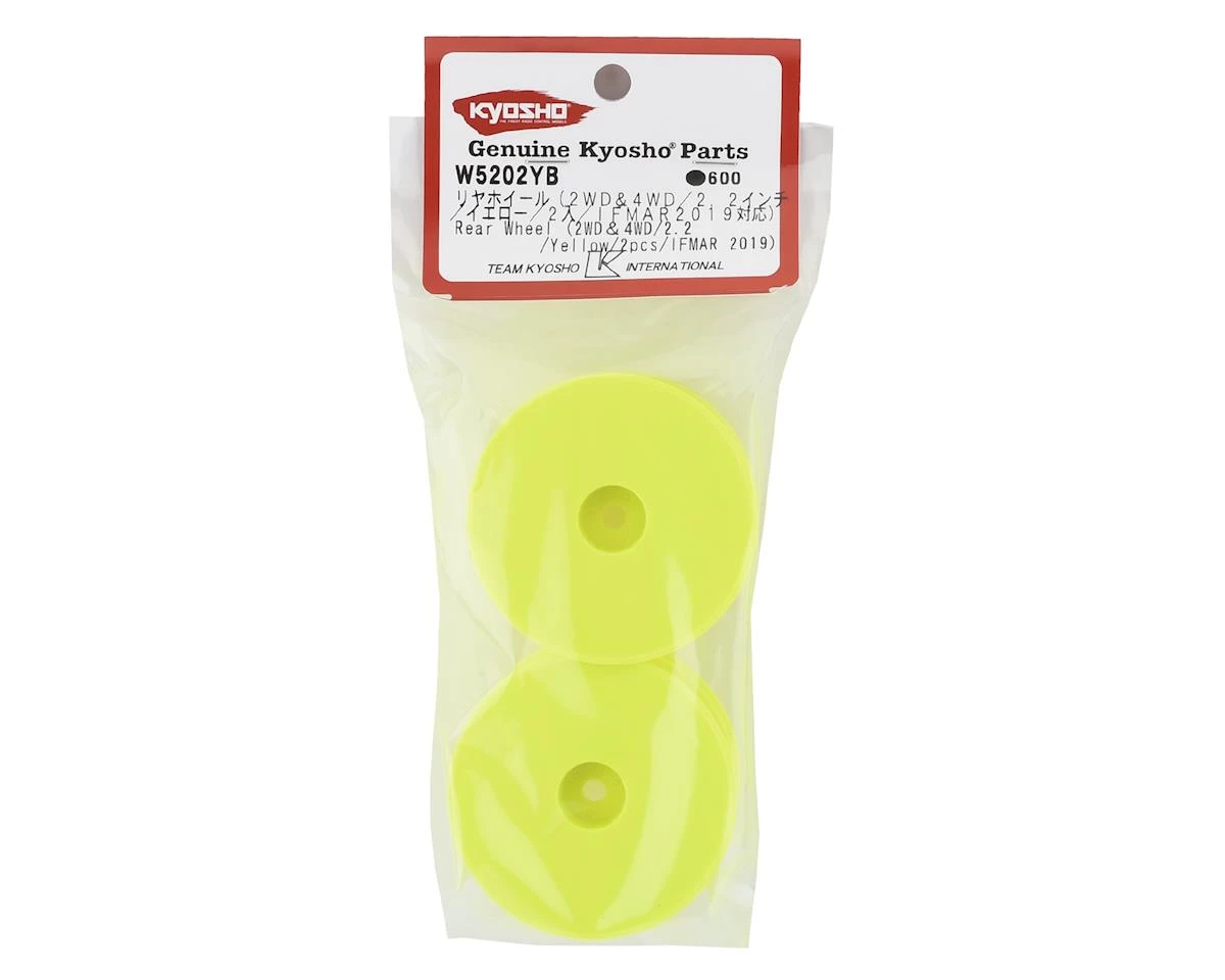 This is a set of Kyosho Yellow 12mm Hex 2.2″ 2WD Rear Wheels, intended for use with the Ultima and Lazer kits.
