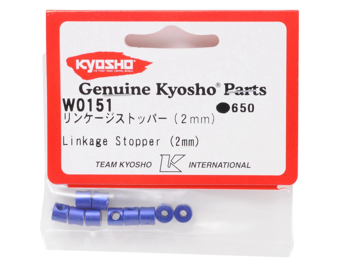This is a pack of ten replacement 2mm linkage stoppers from Kyosho. These linkage stoppers mount to your throttle or brake linkage rod. These stoppers do not include set screws.