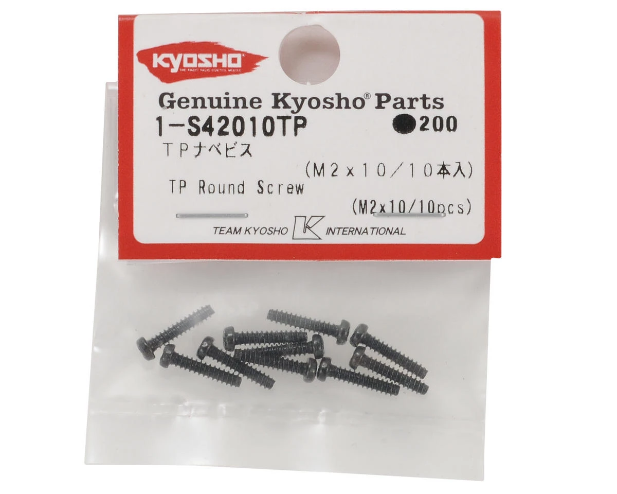 This is a pack of ten replacement Kyosho 2x10mm Self Tapping Round Head Screws.