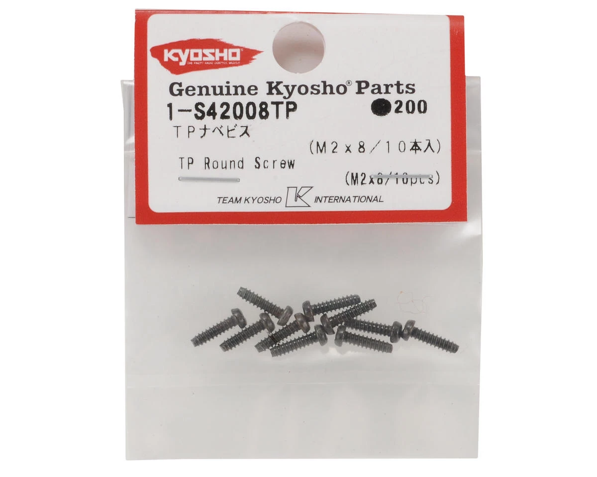 This is a pack of ten replacement Kyosho 2x8mm Self Tapping Round Head Screws.