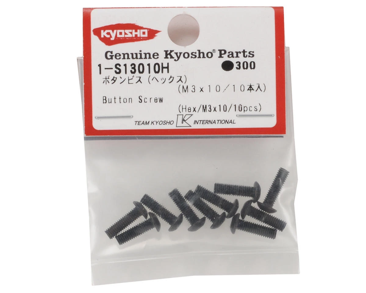 This is a pack of ten Kyosho 3x10mm Button Head Hex Screws.
