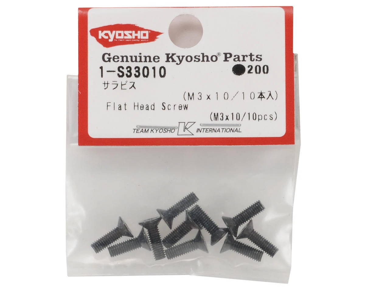 This is a pack of ten replacement Kyosho 3x10mm Flat Head Phillips Screws.
