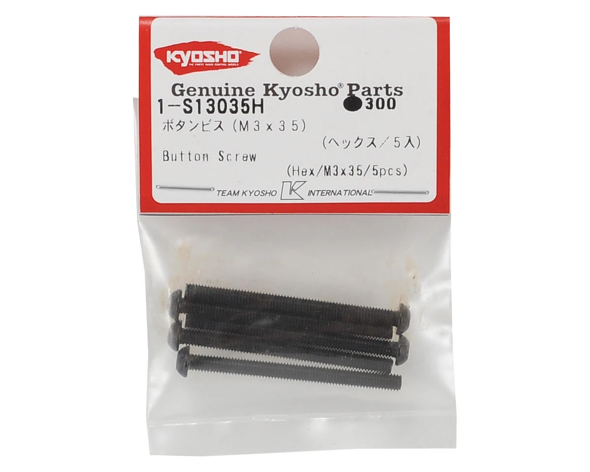 This is a pack of five replacement Kyosho 3x35mm Button Head Hex Screws.Â