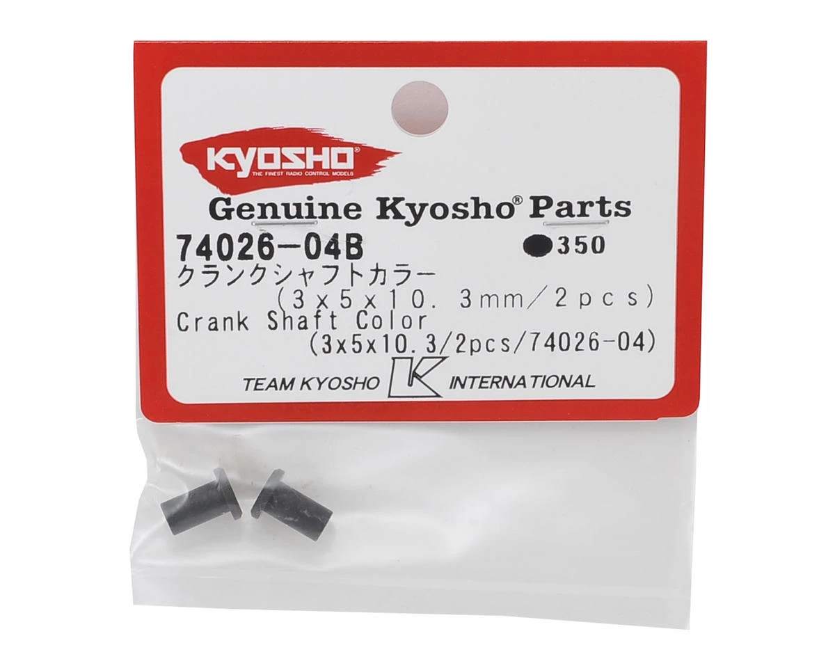 Kyosho 3x5x10.3mm Crank Shaft Collar. These are the B version collars used on the crankshaft, during clutch bearing and gear assembly. These also allow you to use standard 5x10x4mm clutch bearings and eliminate the need for needle bearings on the GT2. Package includes two collars.