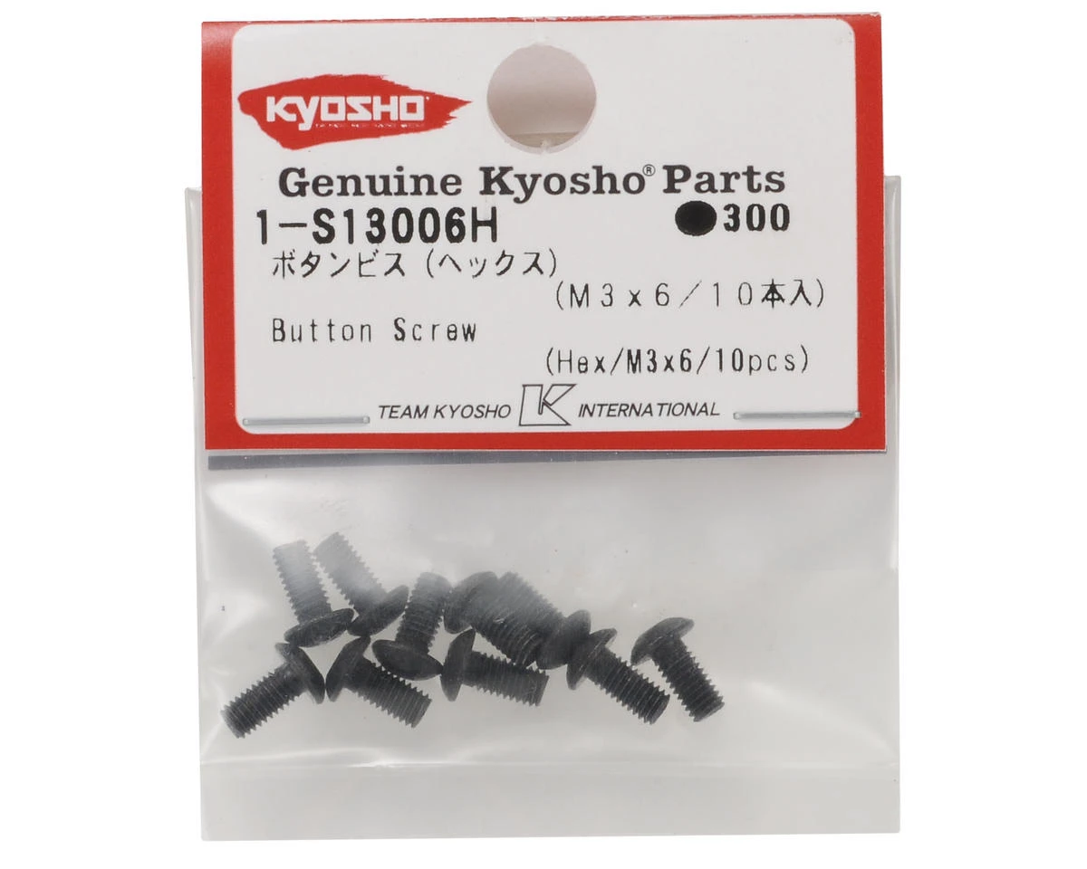 This is a pack of ten Kyosho 3x6mm Button Head Hex Screws.Â