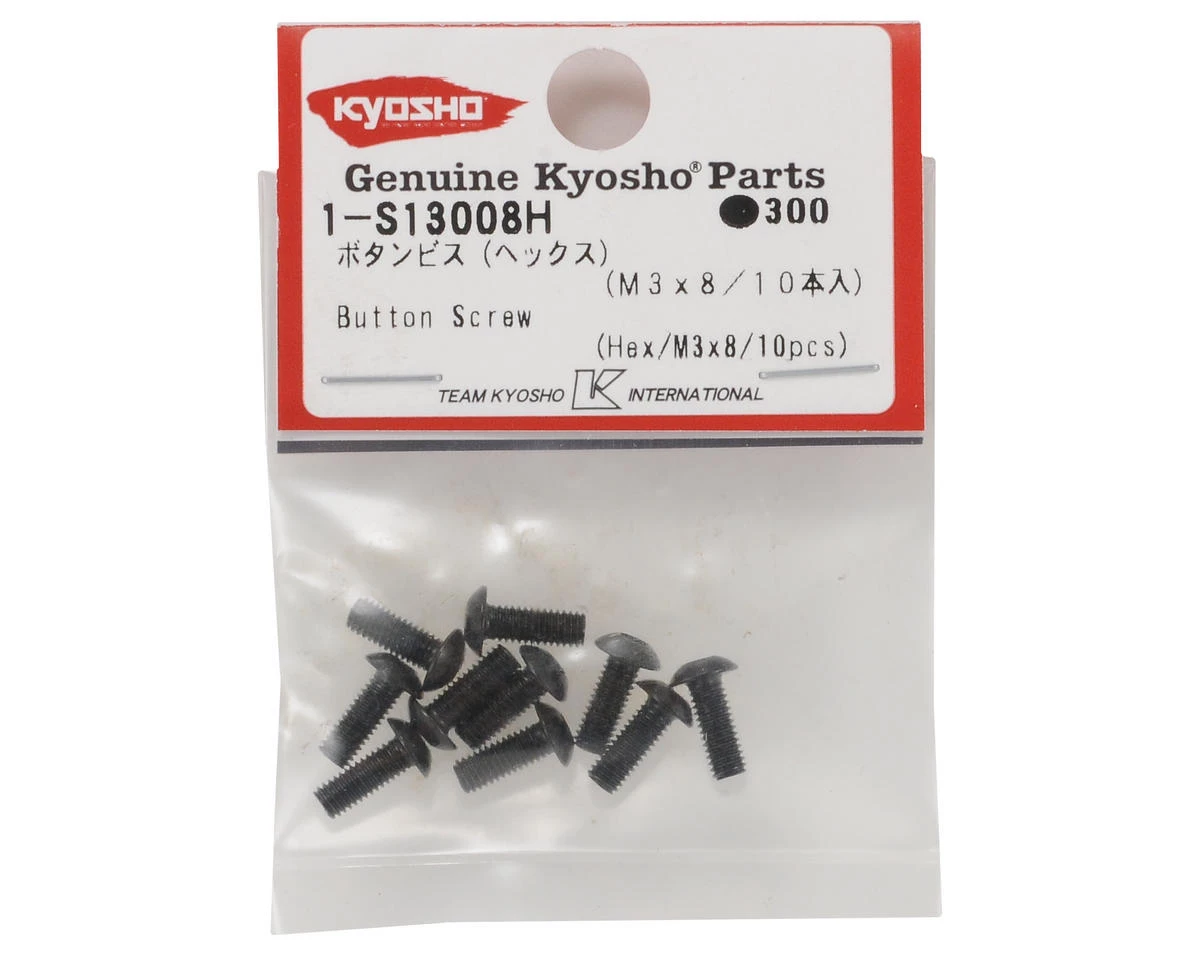 This is a pack of ten Kyosho 3x8mm Button Head Hex Screws.