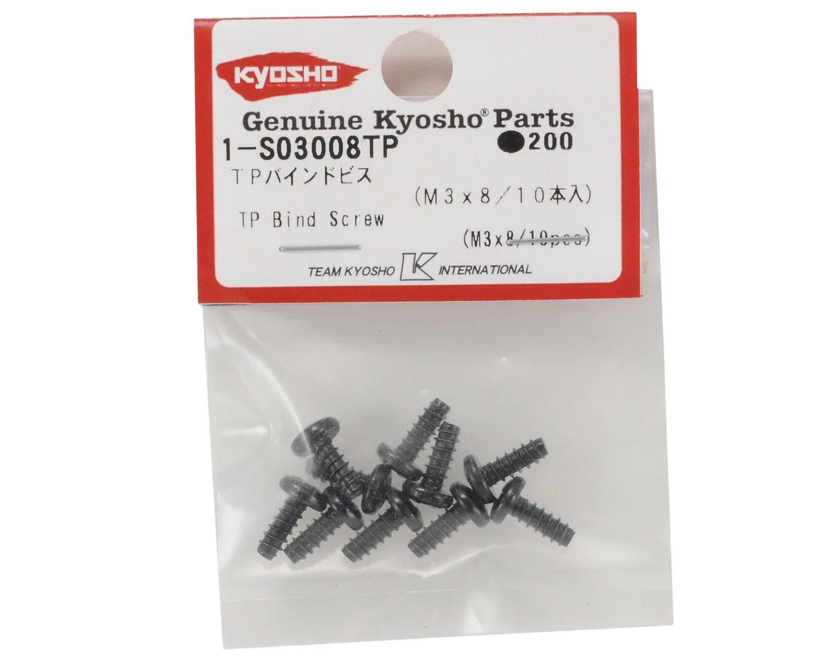 This is a pack of ten Kyosho 3x8mm Self Tapping Binder Head Screws.Â
