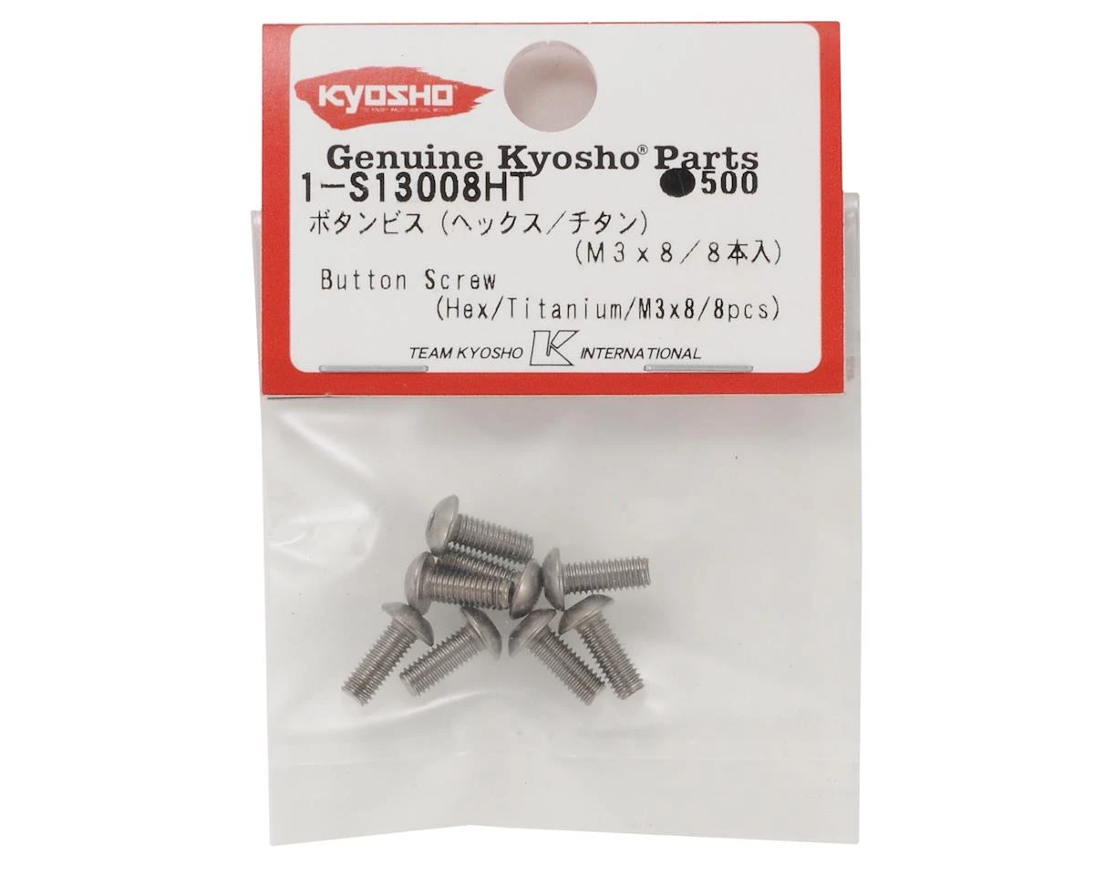 This is a pack of eight replacement Kyosho 3x8mm Titanium Button Head Screws.