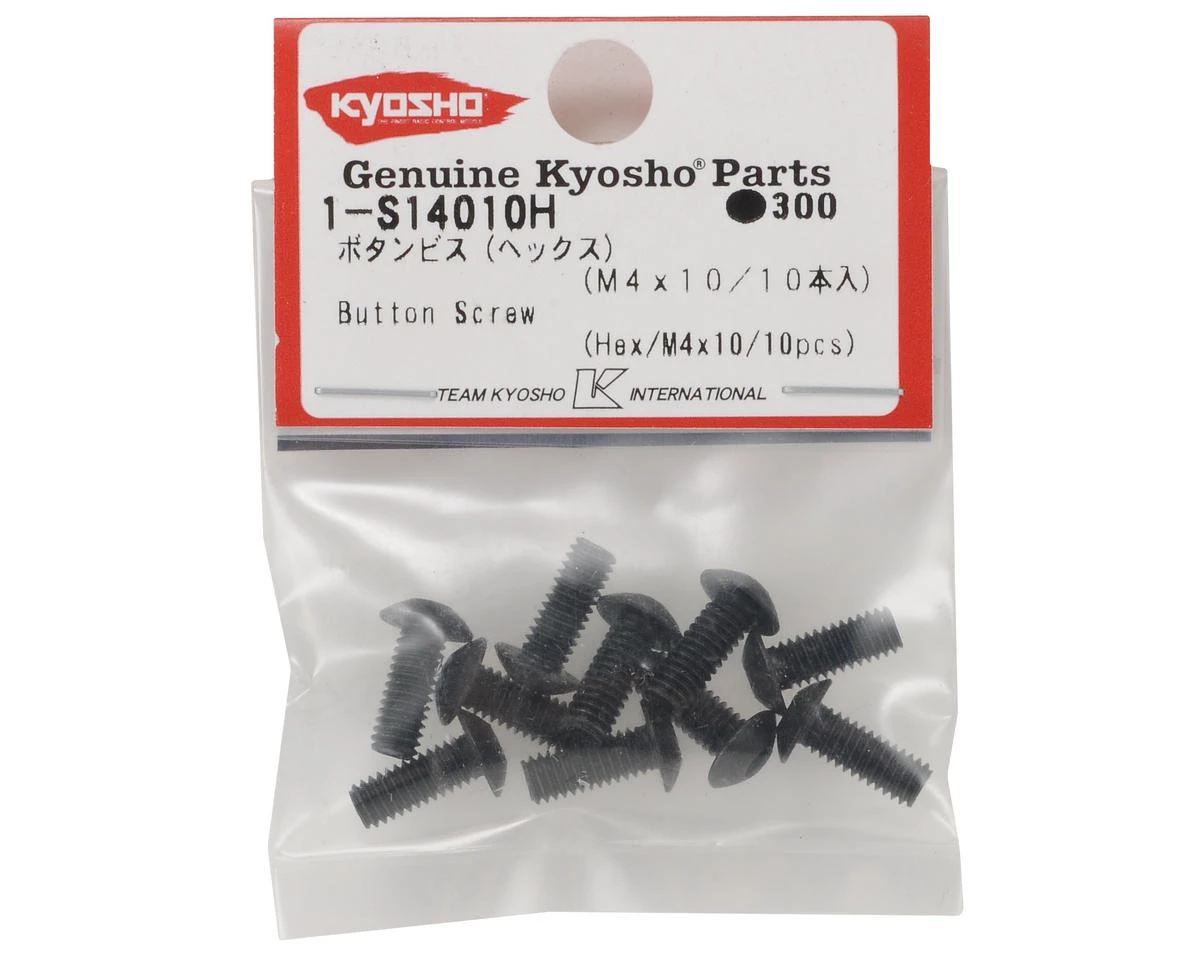 This is a pack of ten Kyosho 4x10mm Button Head Hex Screws.Â