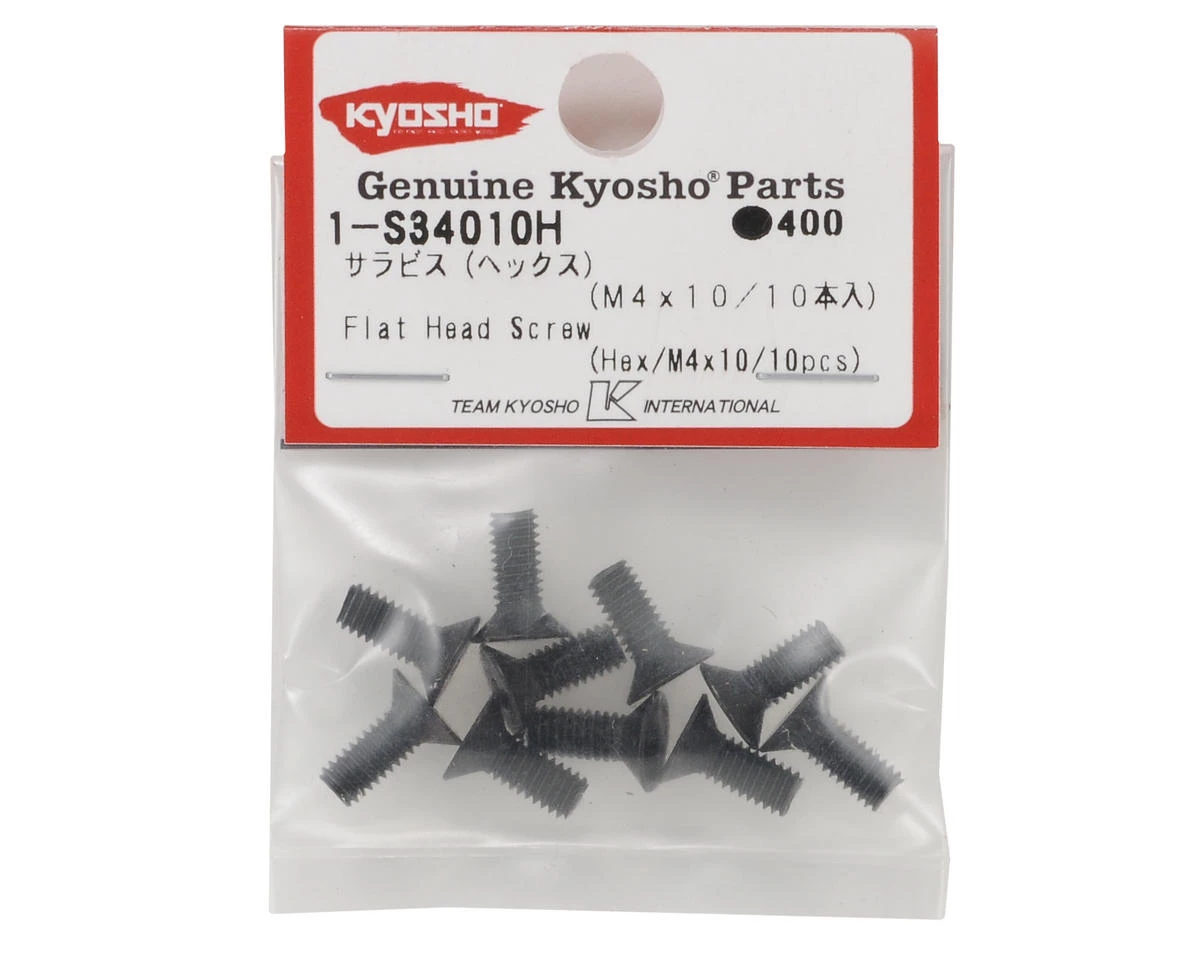 This is a pack of ten replacement Kyosho 4x10mm Flat Head Hex Screws.