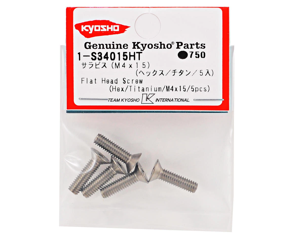 This is a pack of five Kyosho 4x15mm Titanium Flat Head Hex Screws.