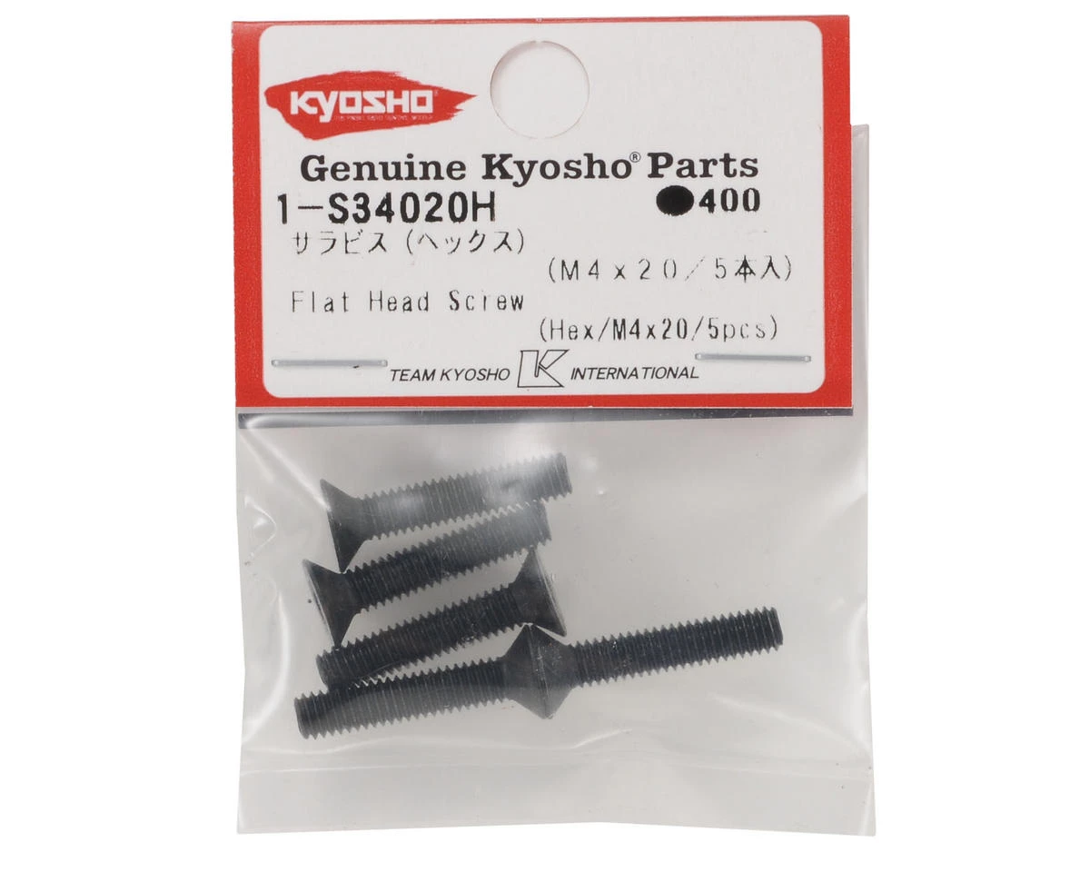 This is a set of five replacement Kyosho 4x20mm Flat Head Hex Screws. These are an excellent choice for any application that requires a 4x20mm Flat Head Hex Screw.