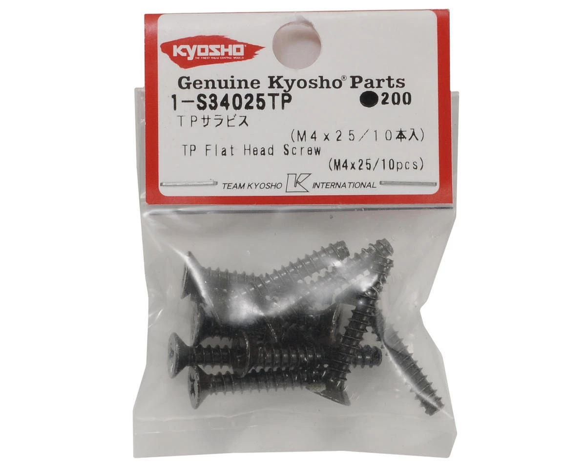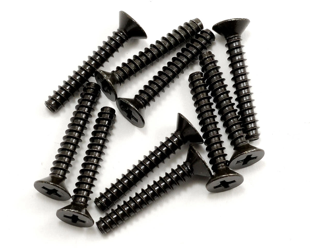 This is a pack of ten replacement Kyosho 4x25mm Self Tapping Flat Head Phillips Screws.