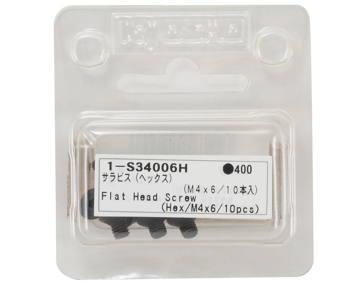 This is a pack of ten Kyosho 4x6mm Flat Head Hex Screws. These areanexcellent choice for any application that requires a 4x6mm Flat HeadHex Screw.Â