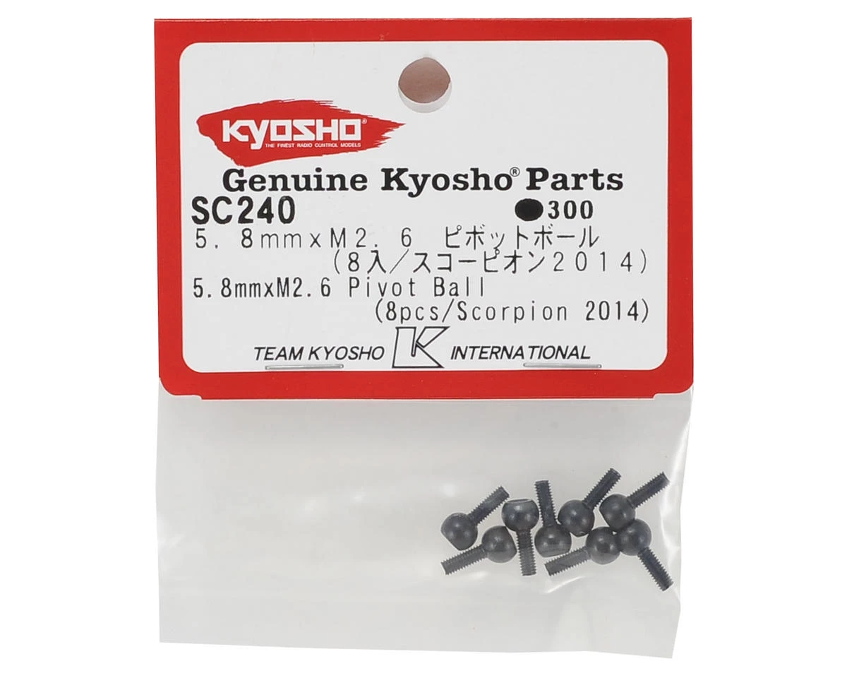 This is a pack of eight replacement Kyosho Scorpion 2014 5.8mm x M2.6 Pivot Balls.