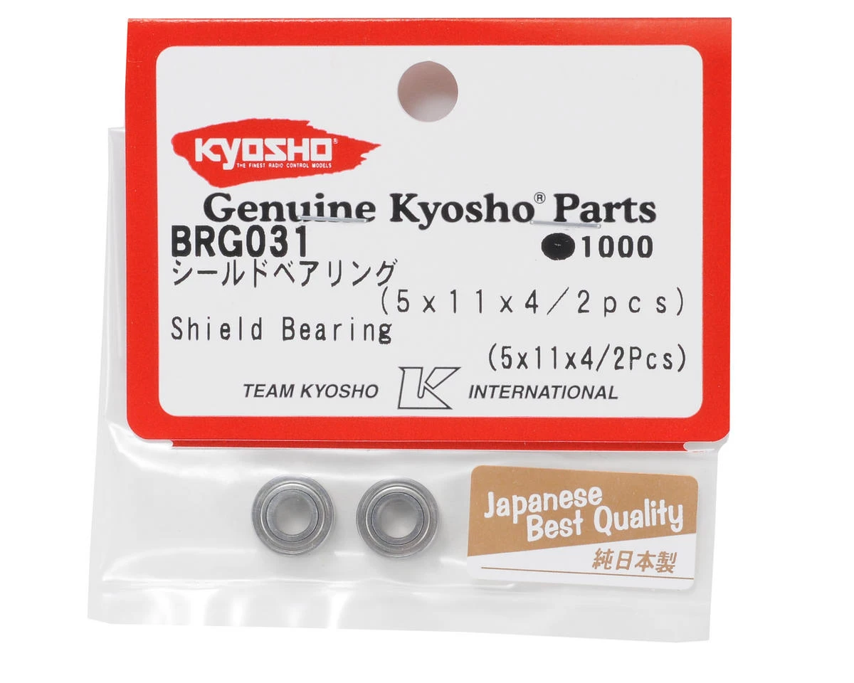 This is a pack of two Kyosho 5x11x4mm Shielded Bearings. These bearings are high quality, metal shielded bearings that can be used in any application that requires a 5x11x4mm metal shield bearing.