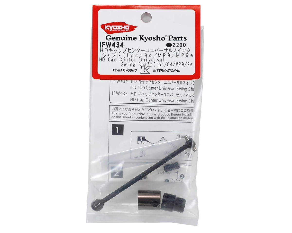 This is an optional Kyosho 84mm HD Cap C-Universal Front/Center CVD Set, and is intended for use with the Kyosho MP9 family of vehicles. Machined from high grade steel, these HD CVD’s are designed to last and feature a cap that slides over the coupler to help prevent the pin from coming out if the set screw loosens up. CVD’s help to improve the smoothness of the drive train as well as increase efficiency when compared to the stock universals or dog bone type driveshafts, and are the preferred driveshaft on smooth, high bite surfaces. Package includes one 84mm driveshaft, one coupler, one coupler cap and necessary hardware.