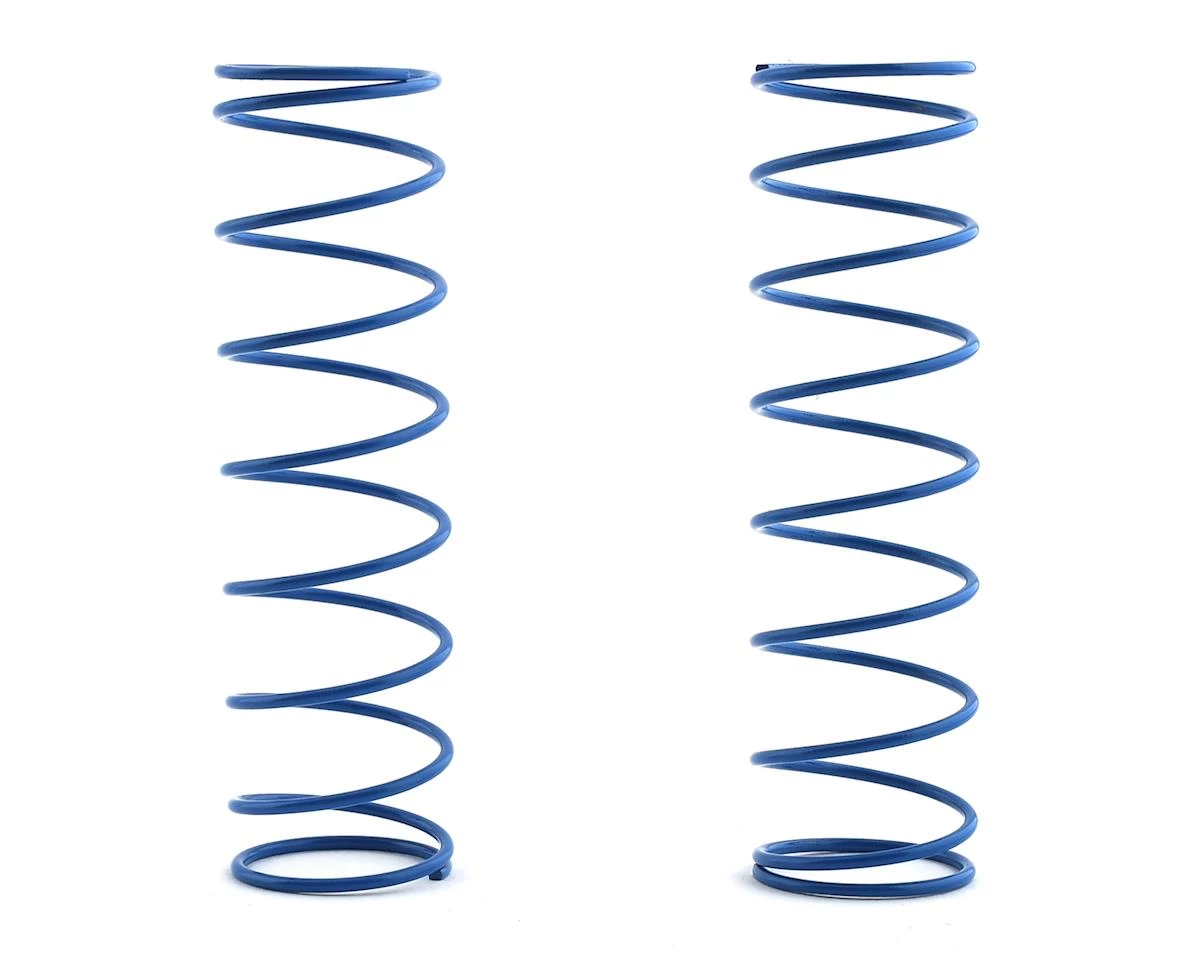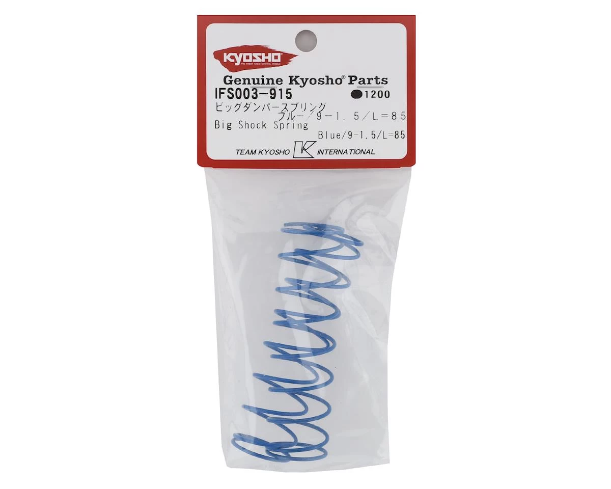 This is a set of optional Kyosho 85mm “Blue” Big Bore Rear Shock Springs, and are intended for use with the Kyosho MP9 and MP10 1/8 scale buggies. These 85mm long rear springs are recommended for rough tracks, or tracks with big jumps. These springs are made with 1.5 diameter wire and are more durable than the standard 1.4mm springs. Blue is the stiffest rate spring in the 1.5 wire 85mm spring lineup.Â