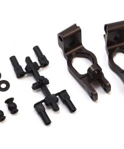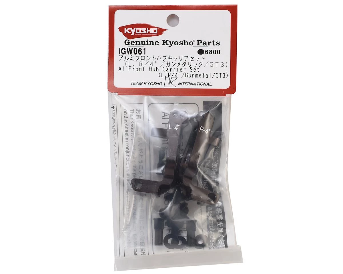This is an optional Kyosho Aluminum Front Hub Carrier Set. These aluminum front hub carriers allow 3 caster settings (Can be changed with bushings – 2 / 4° / +2 degrees) along with knuckle height (shim adjustable). Significantly increases handling response along with durability.
