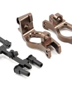 This is an optional Kyosho Aluminum Front Hub Set, and is intended for use with the Inferno MP9. These upgrade parts are direct replacements for the stock plastic front hub carrier. CNC Machined from 7075 aluminum and Hard Anodized in Kyosho’s unique gunmetal finish, these hubs add not only a cool factory look, but also strength, rigidity and reliability to the MP9 and MP9e platforms. Includes the caster inserts that allow for -1°, 0° and +1° caster adjustments.