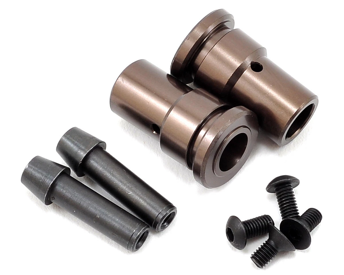This is a pack of two optional Kyosho Aluminum Front Wheel Hubs. These aluminum hubs are anodized gunmetal and help decrease front wheel wobble, while increased precision and durability.