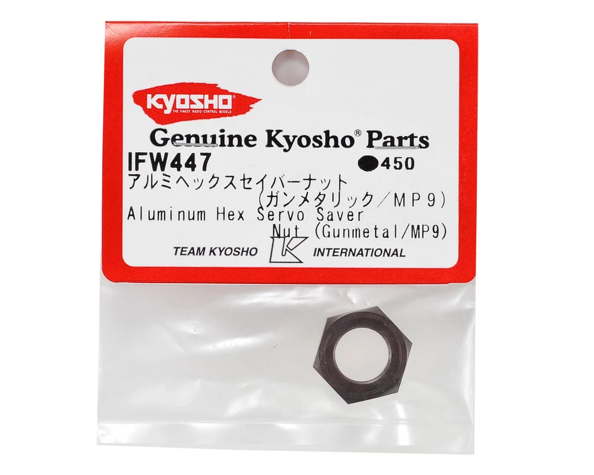 This is an optional Kyosho Aluminum Hex Servo Saver Nut. This nut makes for easier adjustments over the standard knurled unit.Â