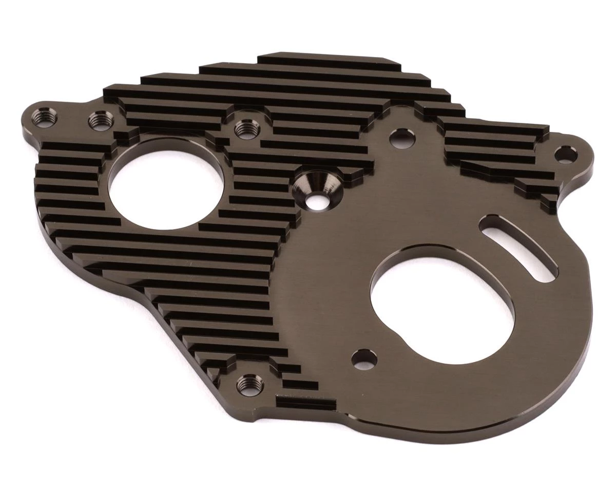 Kyosho Aluminum Motor Plate. This optional motor plate is intended for the Kyosho Ultima. This motor plate is made from CNC machined aluminum and features machined heat sink lines to aid in cooling. Package includes one motor plate.