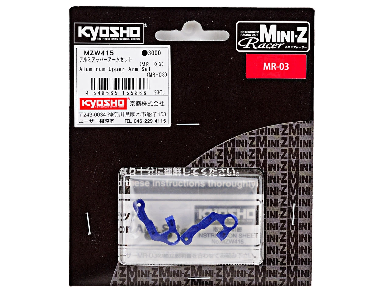 This is an optional Kyosho Aluminum Upper Arm Set, and is intended for use with the Kyosho Mini-Z MR-03. These aluminum upper arms will increase the rigidity in the front suspension. Includes ball and spring holder set (KYOMZW415-1).