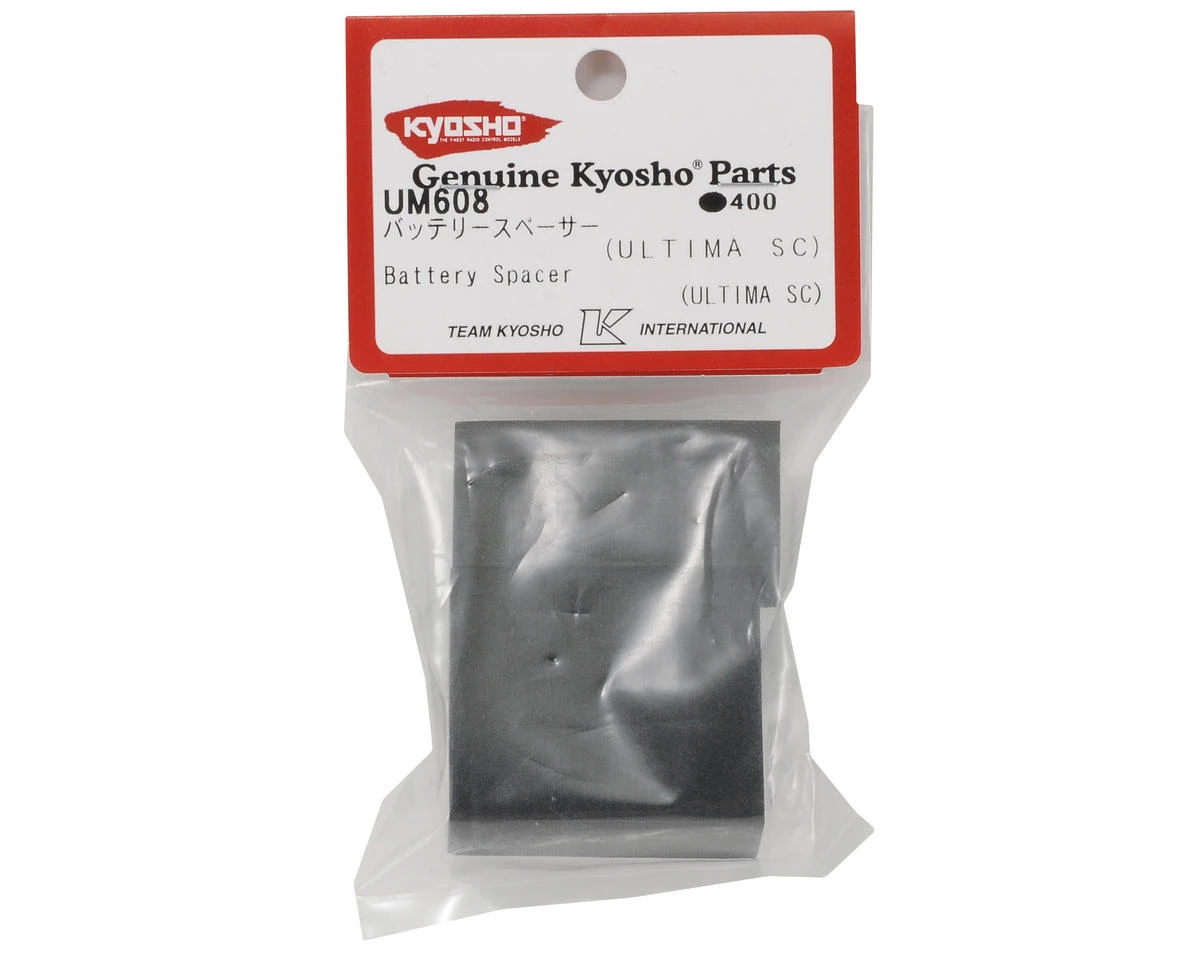 This is a replacement Kyosho Battery Spacer Set, and is intended for use with the Kyosho Ultima SC. Moving the position of these foam spacers will allow you to adjust the weight distribution of the truck by shifting the battery to the front or back. This will alter the steering and rear traction characteristics of the truck and is a great option to aid in chassis setup.