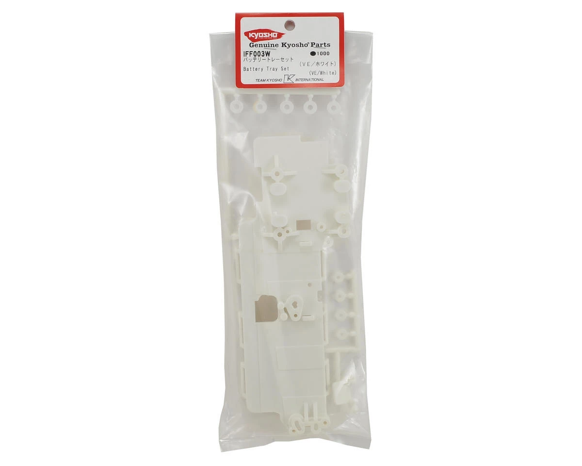 This is an optional Kyosho Battery Tray Set in White color, and is intended for use with the Kyosho Inferno VE and MP9e 1/8 scale electric buggies.Â