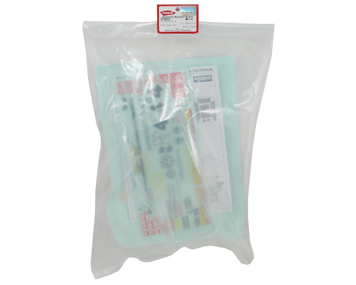This is the Kyosho 2014 Clear Beetle Body. This body comes clear and untrimmed, but does include decals and window masks. Polycarbonate paint is required.