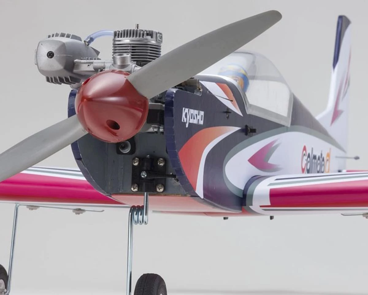 The fuselage features the Calmato’s unique EP/GP convertible design that requires no gluing to dramatically reduce assembly time. New coloring pattern allows coloring on upper and lower surfaces to be changed to improve visibility when flying. The exquisite finish replicates competition model standards and provides an ideal step up for beginners to the sporty performance of low wing flight.