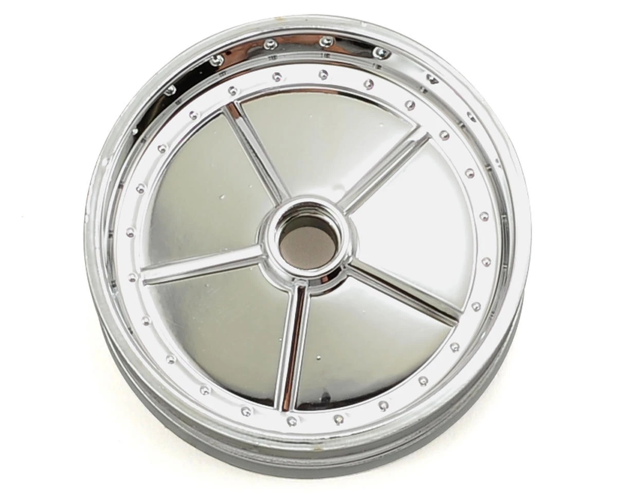 This is a pack of two optional Kyosho Scorpion 2014 Front Wheels. These wheels are available in a black, satin chrome or shiny chrome finish, allowing you to customize the look of your Scorpion buggy. Plus, the finish has been removed from the tire bead area on the chrome wheels for convenience. Additionally, these wheels are also compatible with the Kyosho Beetle 2014 if you want to change the look of your Beetle.Â