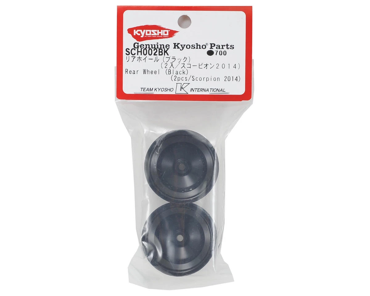 This is a pack of two Kyosho Scorpion 2014 Dish Rear Wheels. These wheels are available in a black, satin chrome or shiny chrome finish, allowing you to customize the look of your Scorpion buggy. Plus, the finish has been removed from the tire bead area on the chrome wheels for convenience. Additionally, these wheels are also compatible with the Kyosho Beetle 2014 if you want to change the look of your Beetle.Â