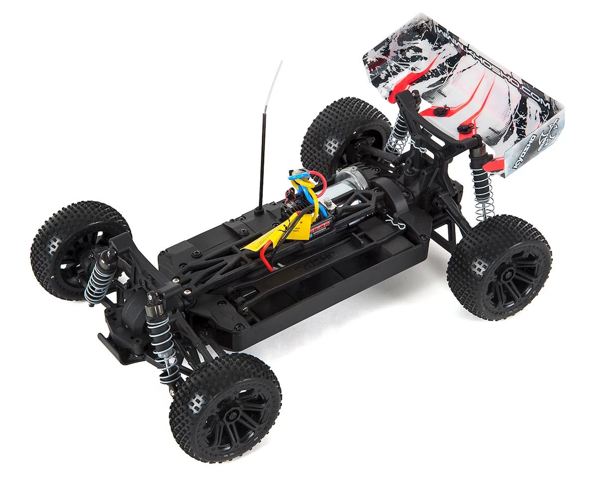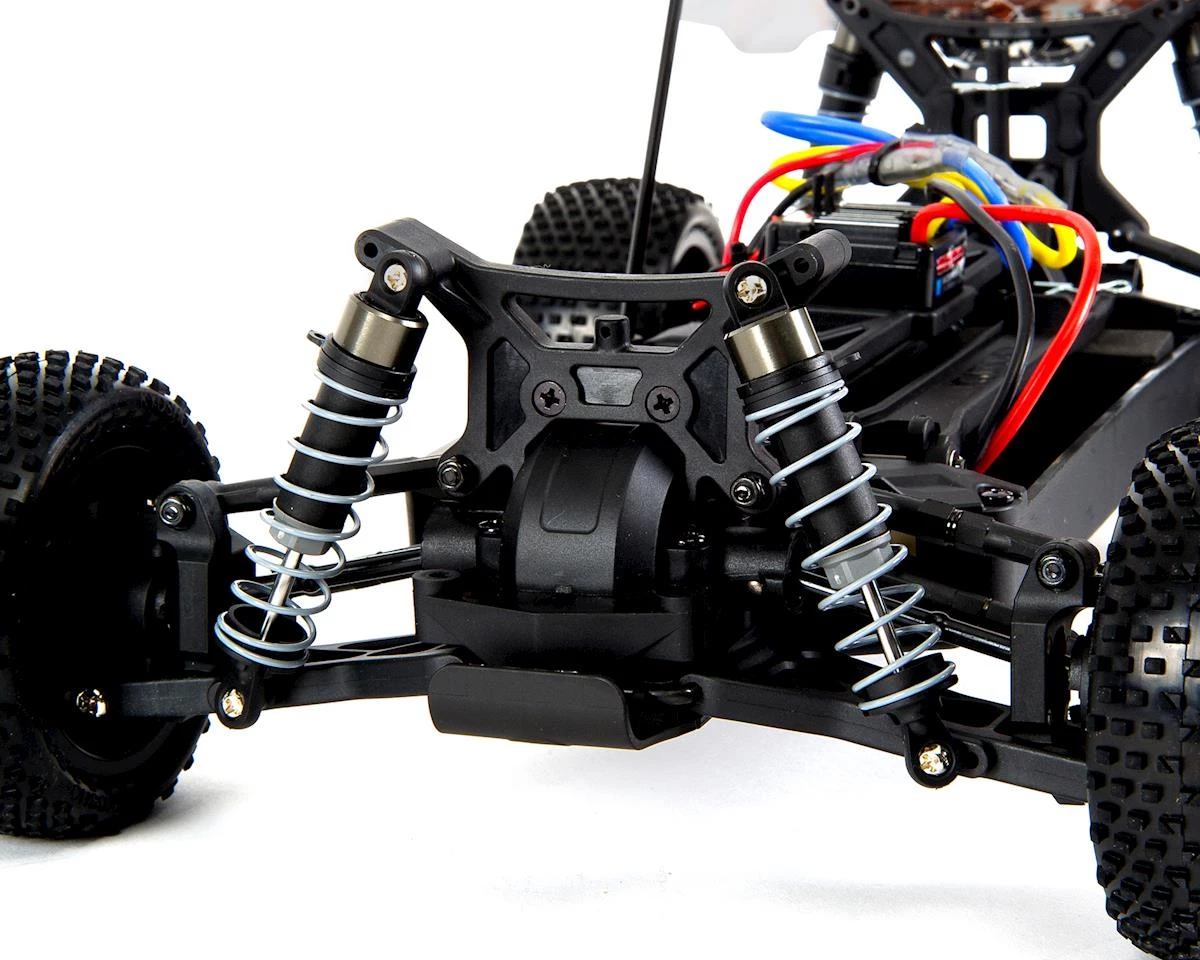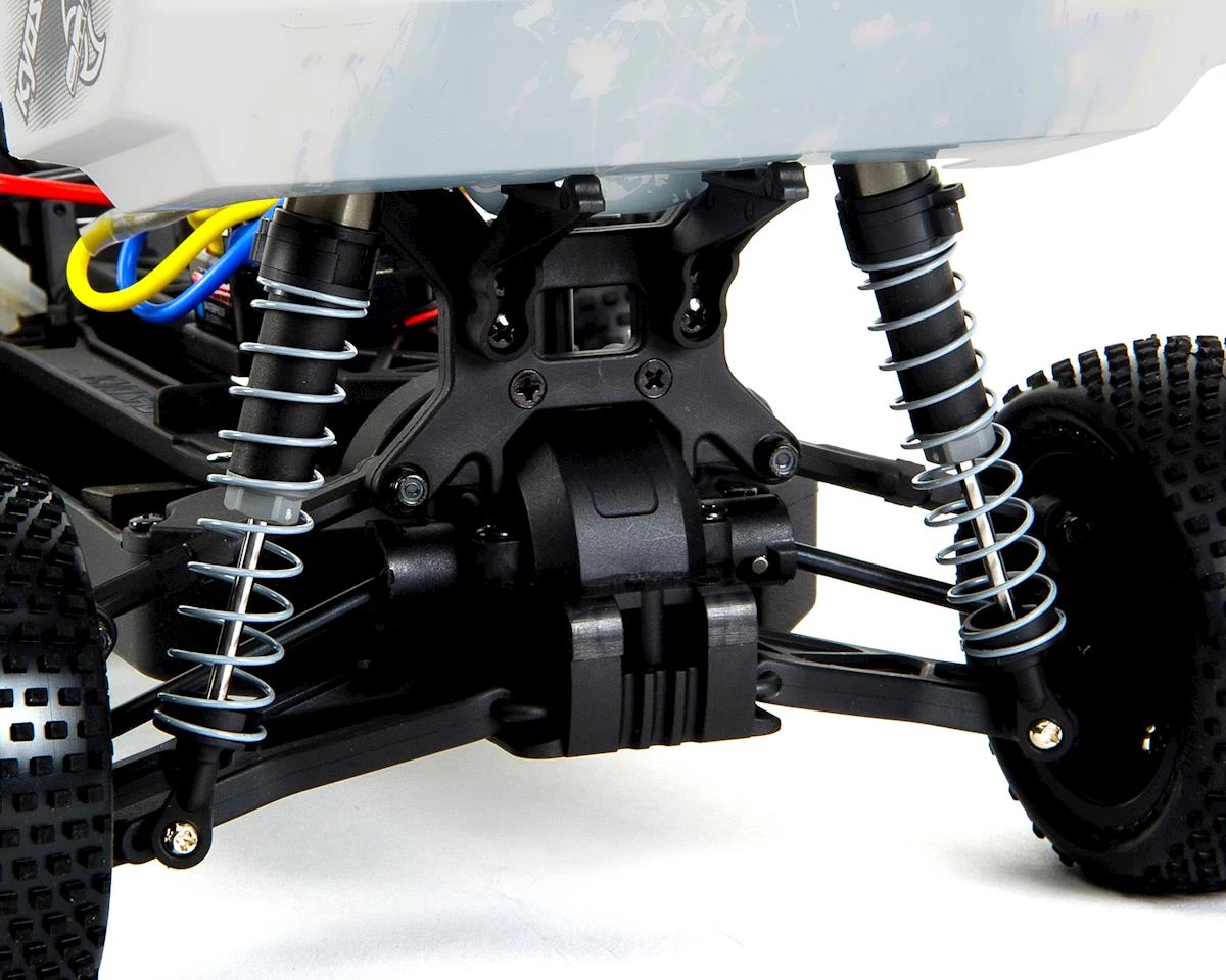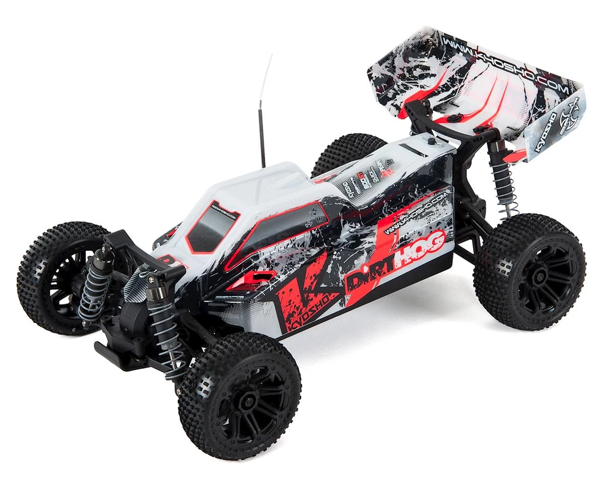 Designed and built to deliver real off-road performance, the EP Fazer Dirthog is an electric buggy that is ready for action straight out of the box. With its low center of gravity design, the center shaft 4WD provides total control and agility. In addition, the slipper clutch, metal diff gears, sealed transmission and left/right one-piece structure of the suspension arm and pivot pin provide the durability and impact resistance for the Dirthog to take on the roughest tracks anywhere without hesitation. Fitted with a 45A continuous current ESC and waterproof KS4081-04W servo, the set also features easy setting of suspension, tie-rods and the KT-231P transmitter (included). The Dirthog can be toughened up even further with a wide range of optional parts as your skill level improves. Everything needed to get going is included except batteries for the transmitter. Just charge up the included battery for the chassis and switch the 2.4GHz R/C system ON, and get dirty! The EP Fazer Dirthog provides real buggy setup and linear control for the ideal entry into the world of R/C motor sports.