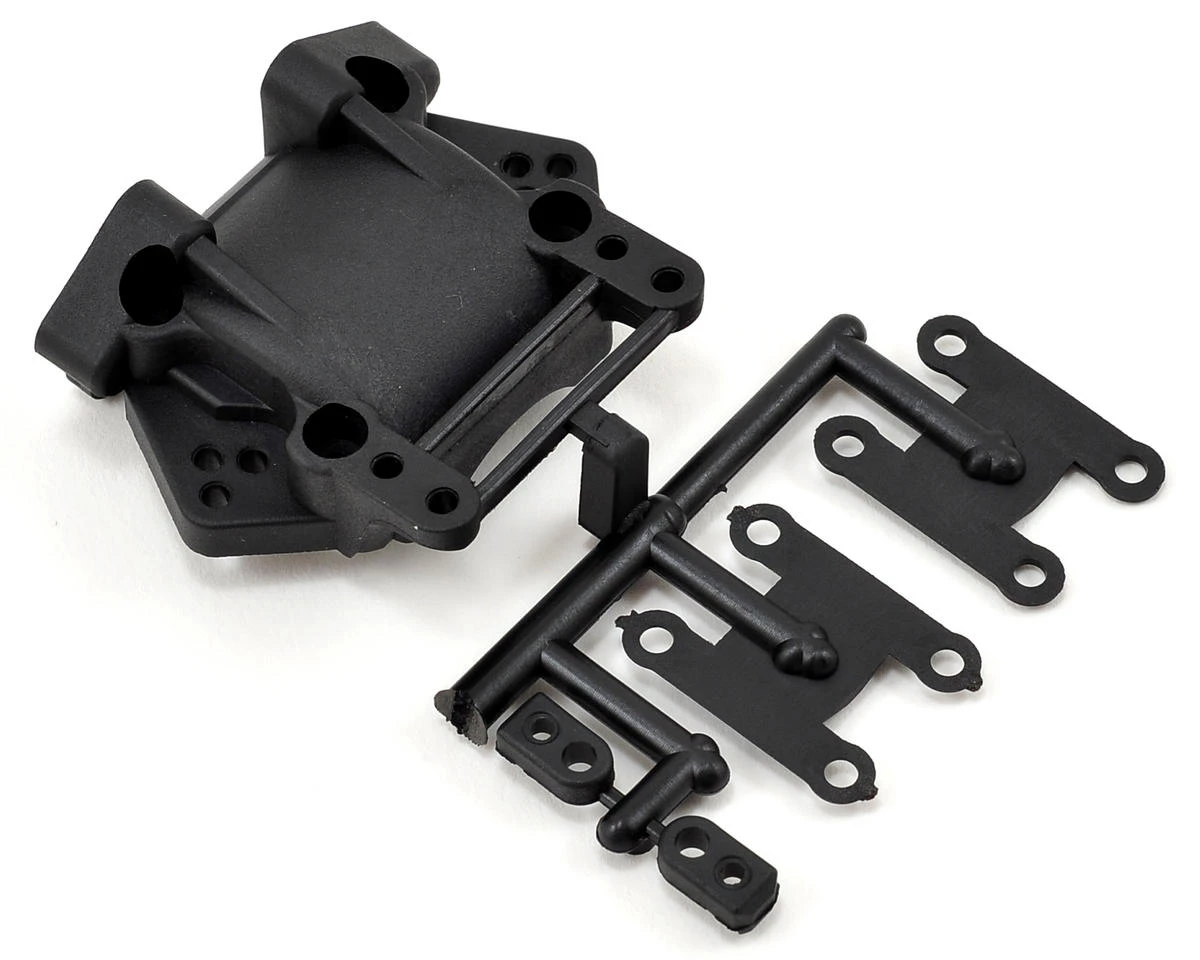 This is a replacement Kyosho Front Upper Bulkhead. Includes swaybar holders, as well as 1 and .05mm arm mount spacers.