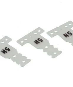 Kyosho FRP 0.5 Hard Rear Suspension Plate. These optional tuning plates are made of Fiber-Reinforced Plastic (FRP) and will help you tune your car for your track conditions. A firmer suspension plate will allow less flex resulting in less chassis roll through corners while a softer plate will allow for more chassis roll. Package includes three optional suspension plates.