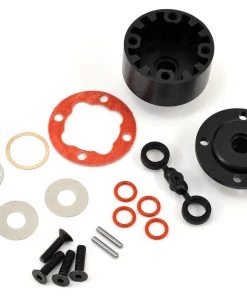 This is a replacement Kyosho Gear Differential Case Set. This is used with the Kyosho LAW50 gear diff set. Package includes diff case halves, bushings, o-rings, gasket, shims, pins and hardware.