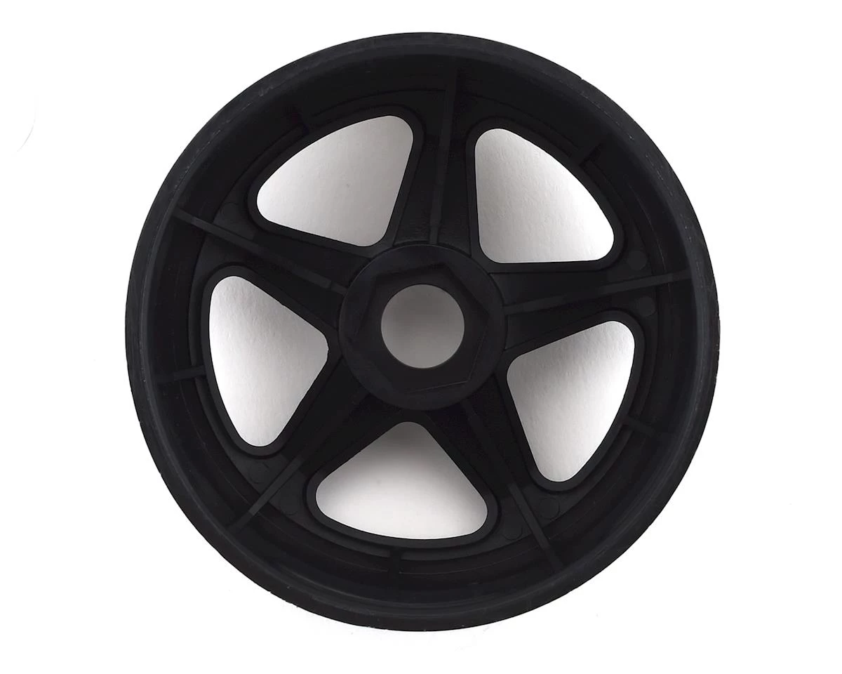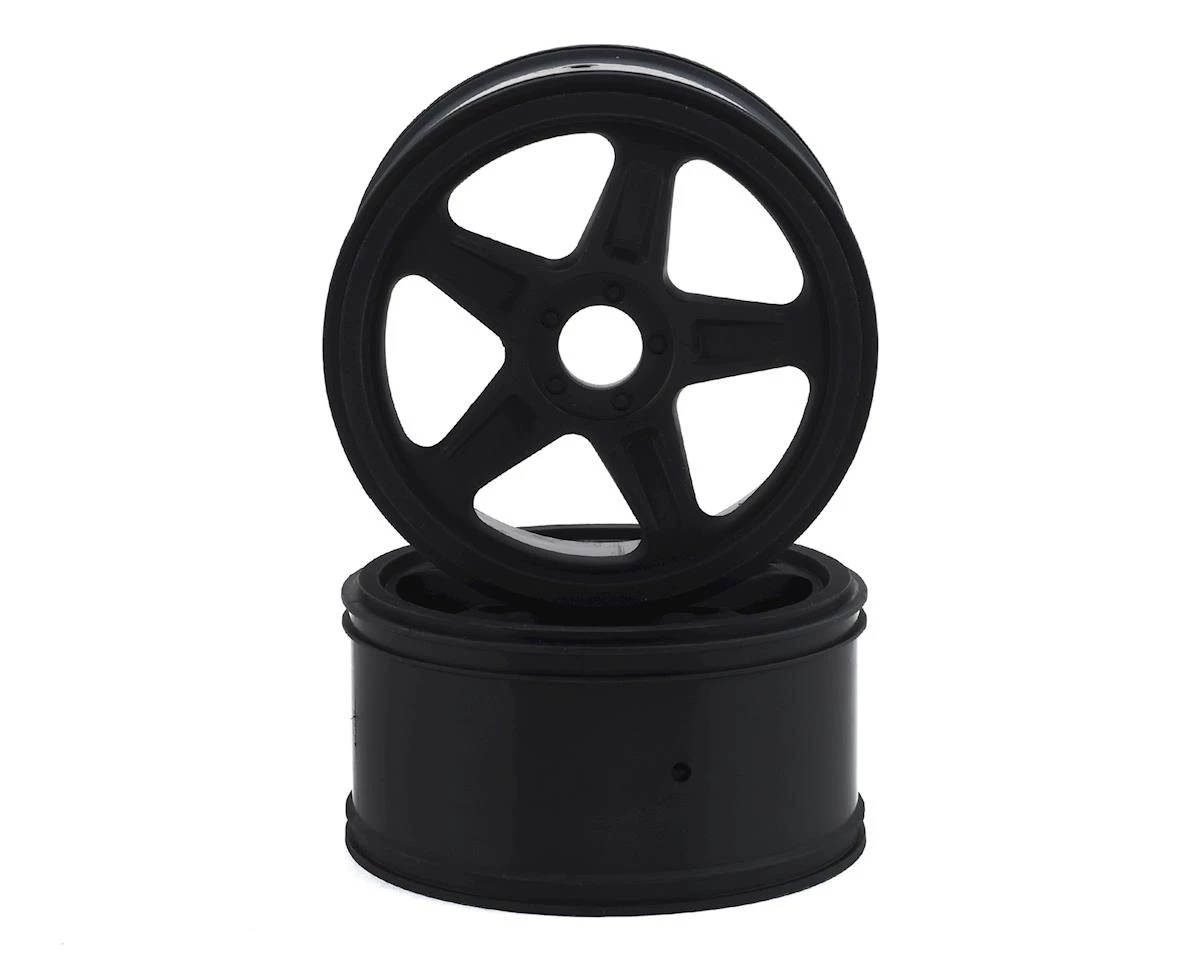This is a replacement set of two Kyosho Black GT2 5-Spoke Wheel, intended for use with Inferno GT and GT2 kits. These smaller diameter wheels will ONLY fit KYOIGT004 tires. Package includes two wheels.Â