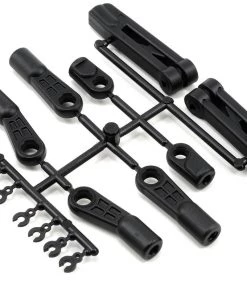 This is a set of two Kyosho Hard Front Upper Arms, and are intended for use with the Kyosho MP9 1/8 buggy. These are the revised MP9 front upper arms. More material has been added to the area surrounding the hinge pin, reducing the risk of breaking in the event of a hard impact. This new set of arms is made from the Kyosho ‘hard’ plastic compound, so the part is more rigid, and less likely to wear prematurely at the hinge pins. The Kyosho Inferno MP9 Front Upper Arm Set includes two arms, one for left side and one for the right side, 4 spacers for adjusting caster, and the upper outer ball ends.