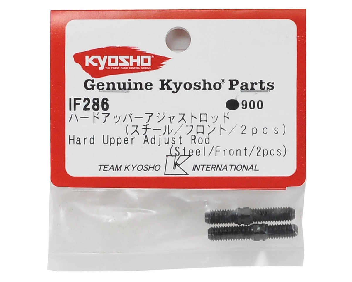 This is a pack of two replacement Kyosho Hard Steel Front Upper Adjust Rods. These are compatible with the MP9 kit, and RS models. Replaces IFW123.Â