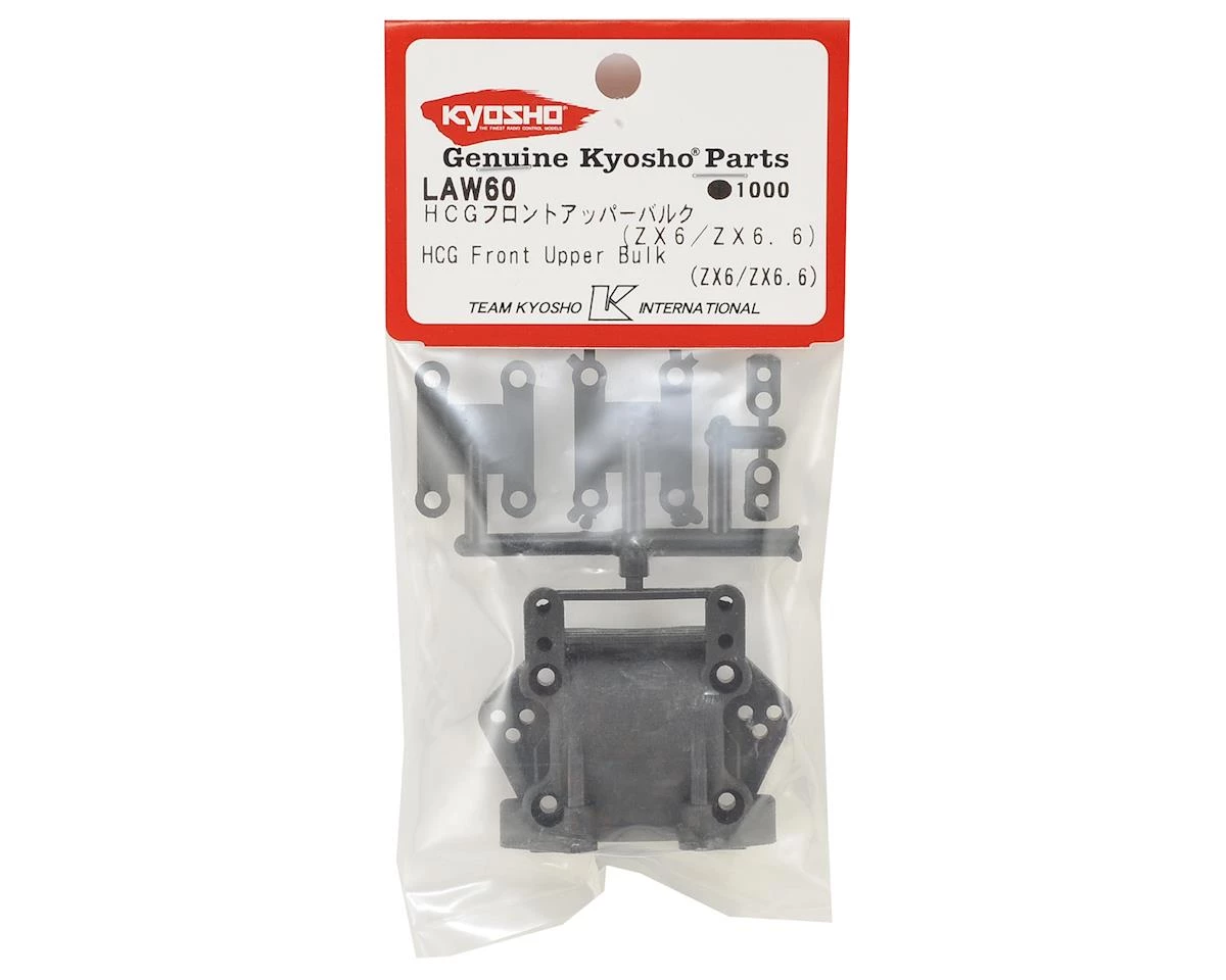 Kyosho HCG Front Upper Bulkhead. This is the optional upgrade front upper bulkhead for the Kyosho Lazer ZX6 and ZX6.6 vehicles. Package includes upper bulkhead, shims and sway bar mounts.Â