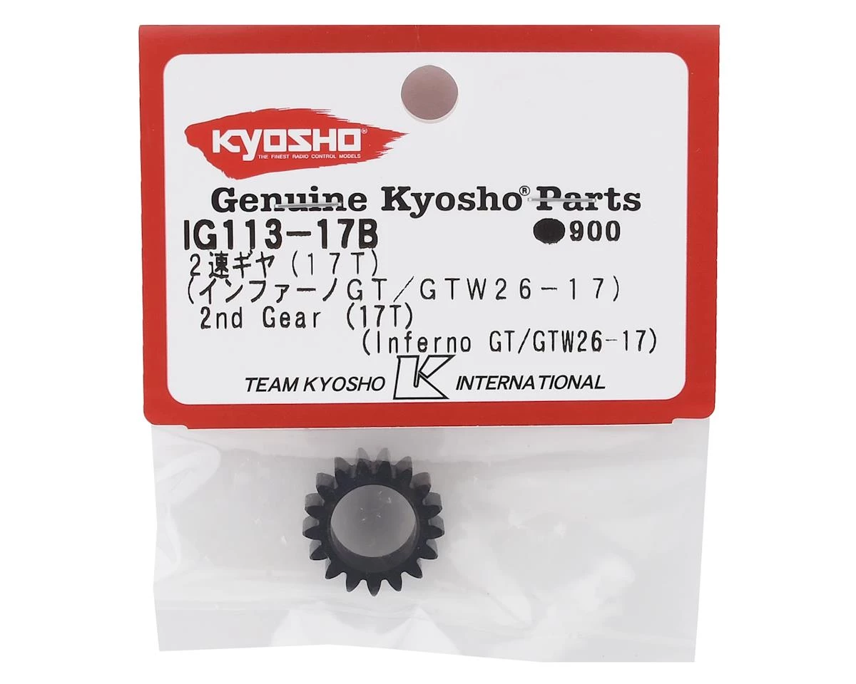 This is a single replacement Kyosho 17T Inferno GT 2nd Gear, intended for use with the 2 speed unit of the DRX/INFERNO GT Series.