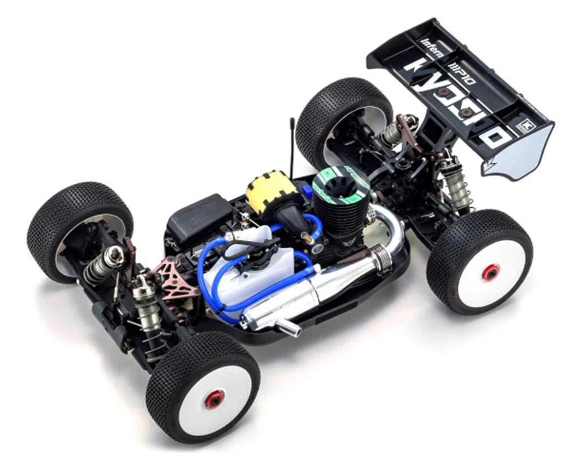The Kyosho Inferno MP10 TKI2 1/8 Nitro Buggy Kit embodies the next generation of Inferno. Re-engineering across the machine with the TKI2 model representing this continued evolution, creating another chapter in the storied history of the Inferno series. Based on rigorous test data from actual racing, the TKI2 has been modified to fine-tune it for improved performance.