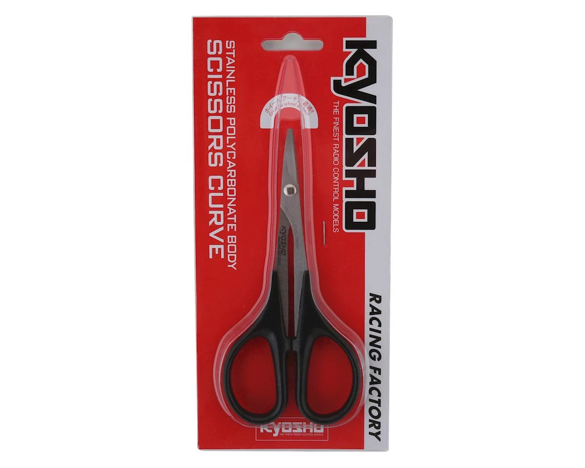 This is a pair of Kyosho KRF Scissors Stainless Curve Lexan Body Scissors, quality curved scissors for trimming and modifying your polycarbonate lexan bodies, wings and accessories.Â