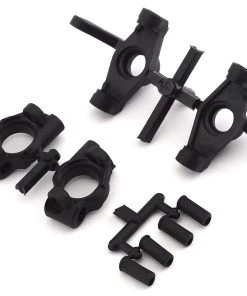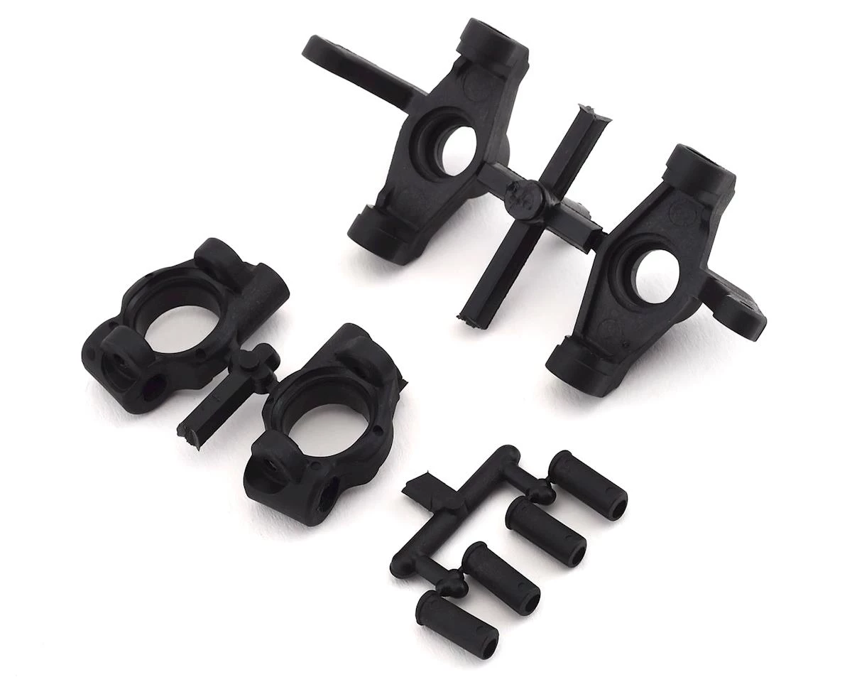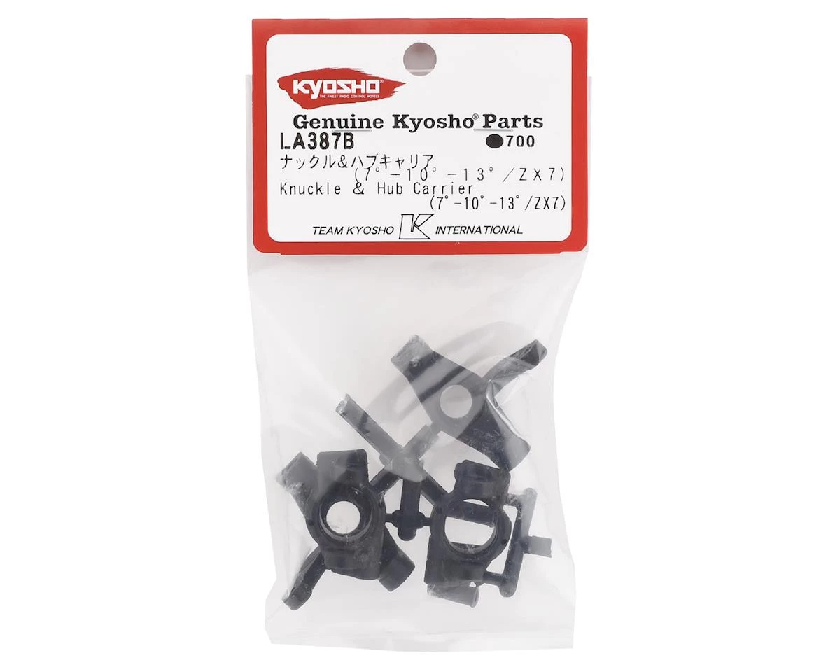 The Kyosho Lazer ZX-7 Knuckle & Hub Carrier Set provides an optional set of knuckles and hub carriers for your Kyosho Lazer ZX7 1/10 4WD Electric Buggy Kit. This set has increased the material surrounding the inserts for improved durability.