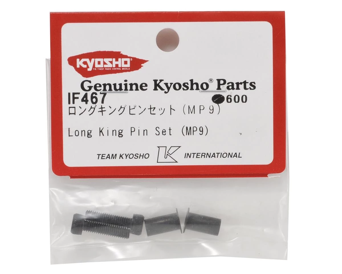 This is the Kyosho Long King Pin Set, and is intended for use with the Kyosho MP9 1/8 buggy. This king pin set reduces the possibility of the steering knuckle coming out in the event of a hard impact. These come stock on the MP9 TKI2.