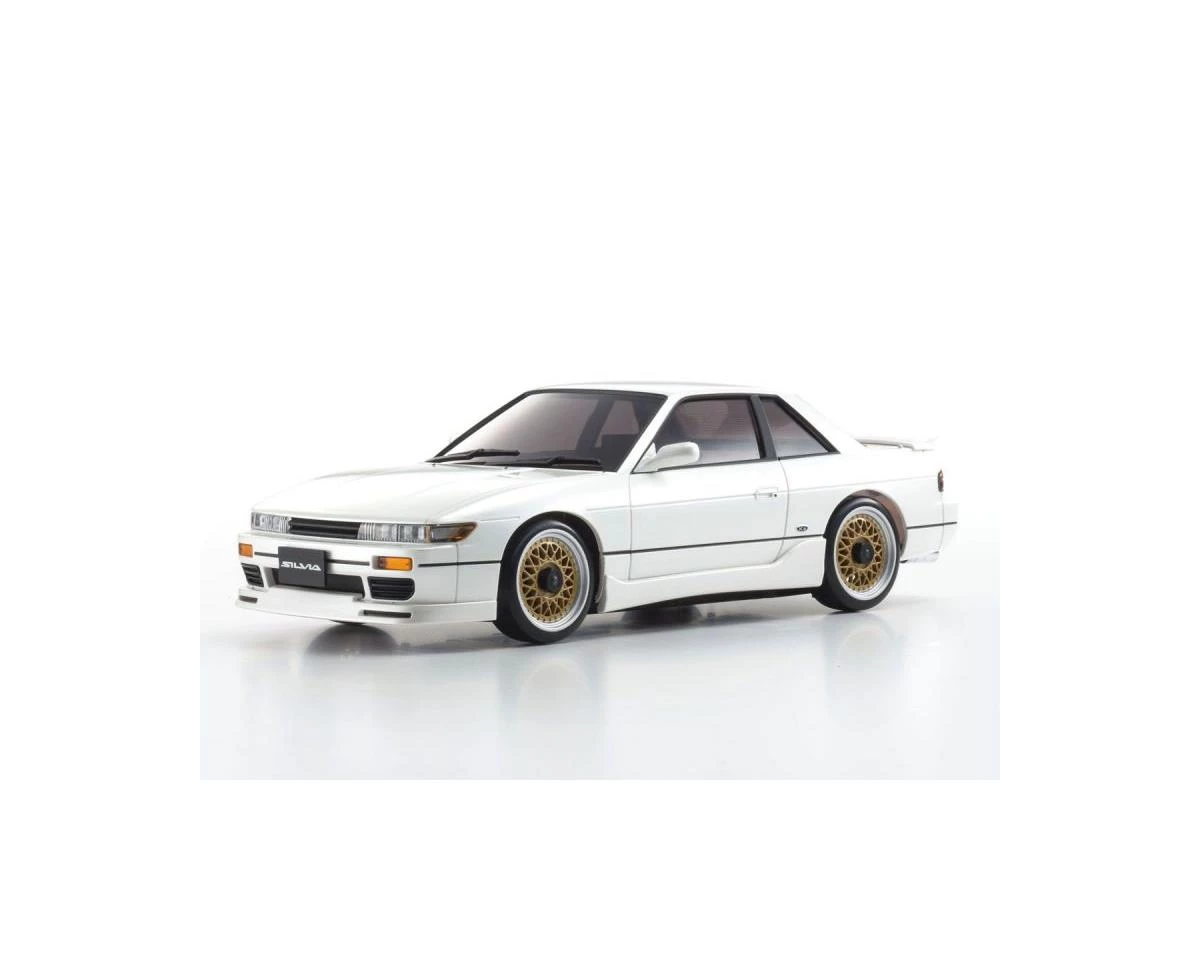 The Kyosho MA-020 Mini-Z Nissan Silvia K’s (S13) Autoscale Body with Aero Kit is a ready to install Pearl White Nissan S13 Silvia K’s option for MA020N platform chassis. This body is equally suited to use as a display model, or to give your existing model a face lift.