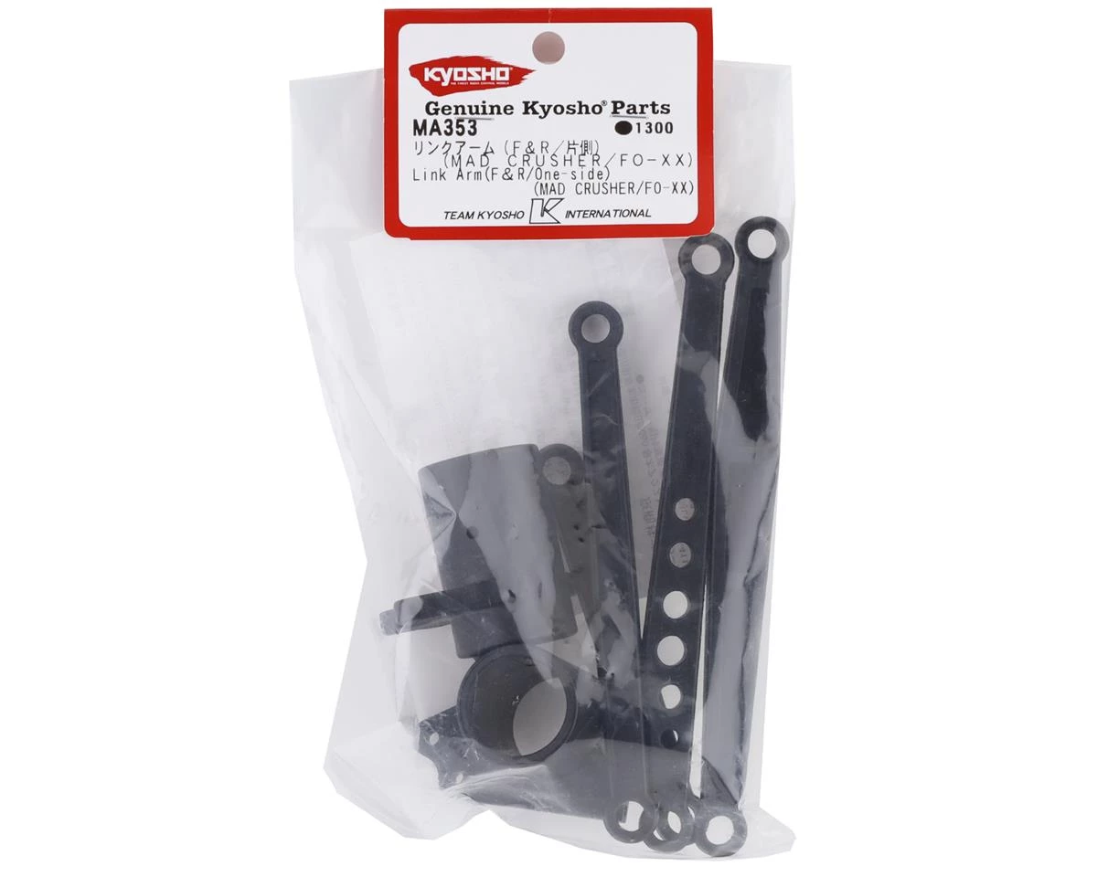 This is a replacement Kyosho Mad Crusher “One-Side” Link Arm, intended for use with the Mad Crusher. This pack does one side, front and rear.