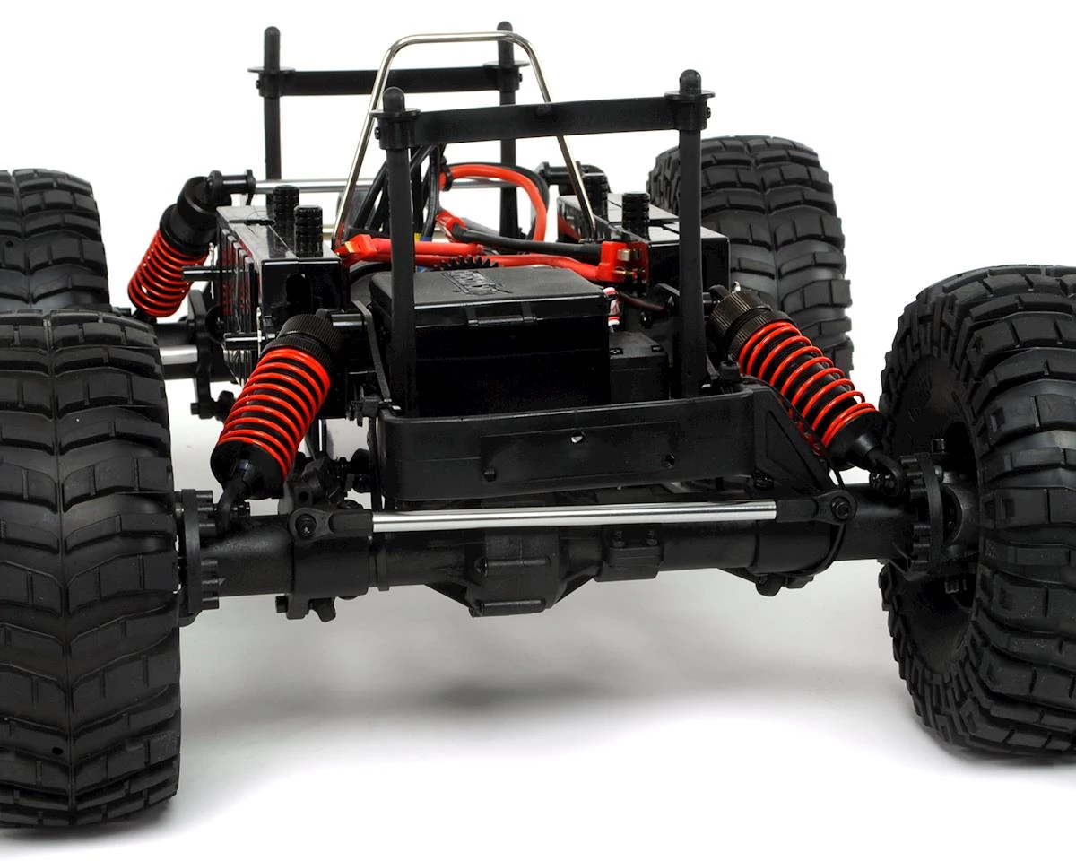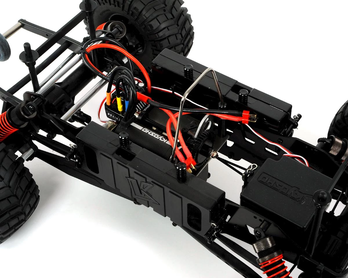 - Waterproof high-torque KS5031-09MW steering servo incorporates metal gears for reliable control of the big chassis.